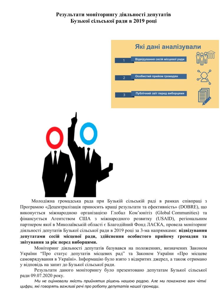 Результати моніторингу діяльності депутатів Бузької сільської ради в 2019 році