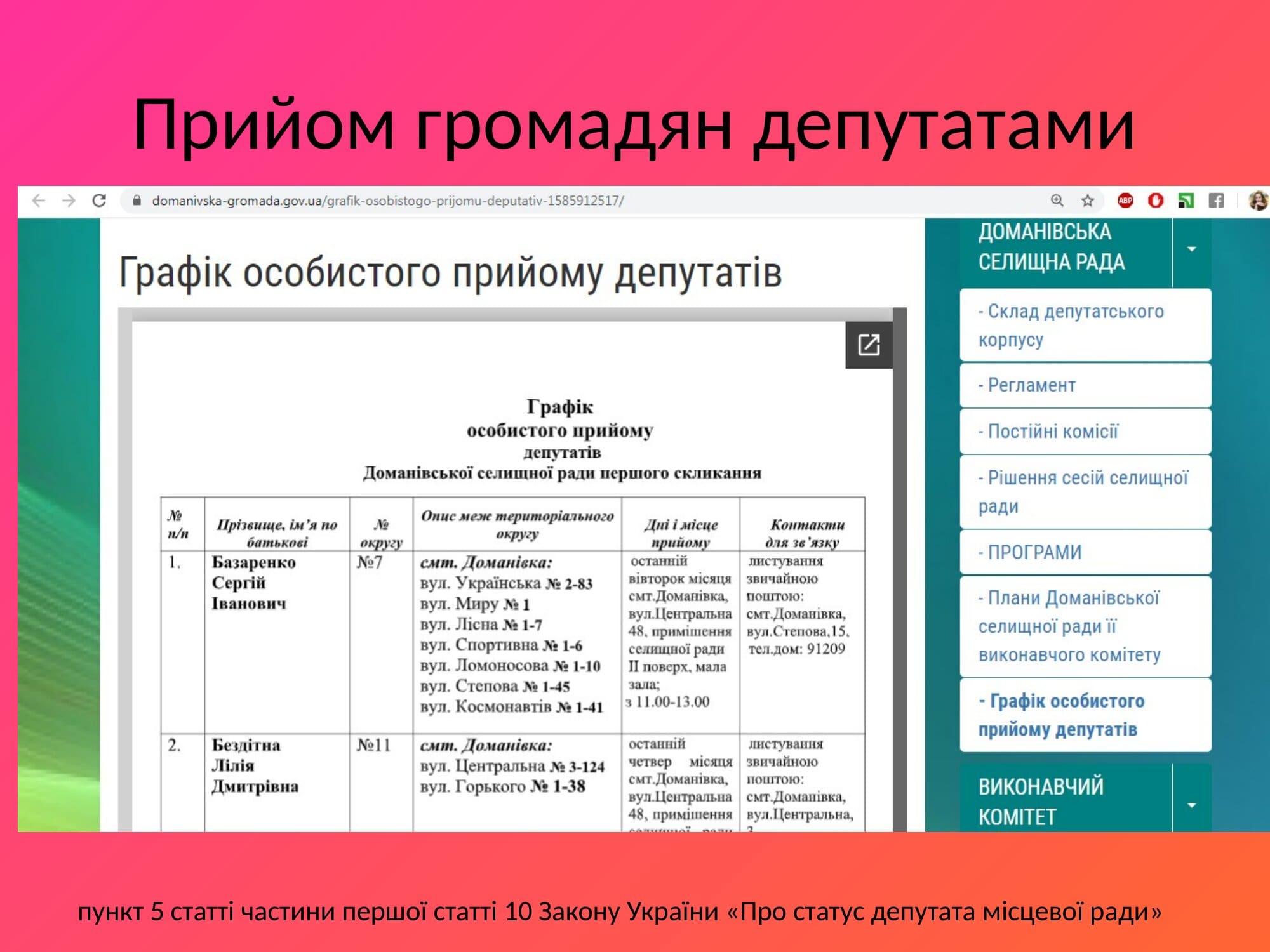 Результати аналізу діяльності депутатів Доманівської селищної ради
