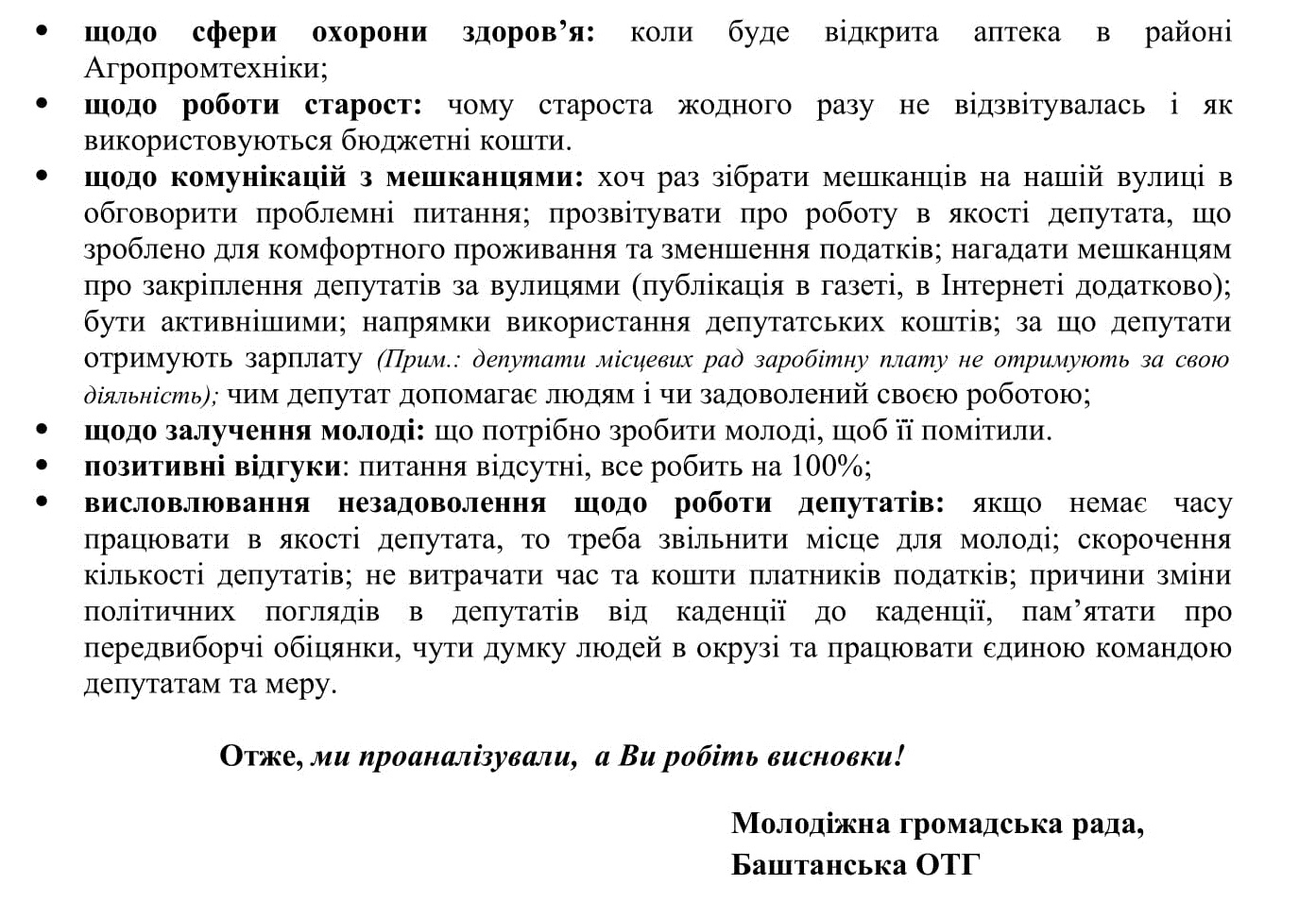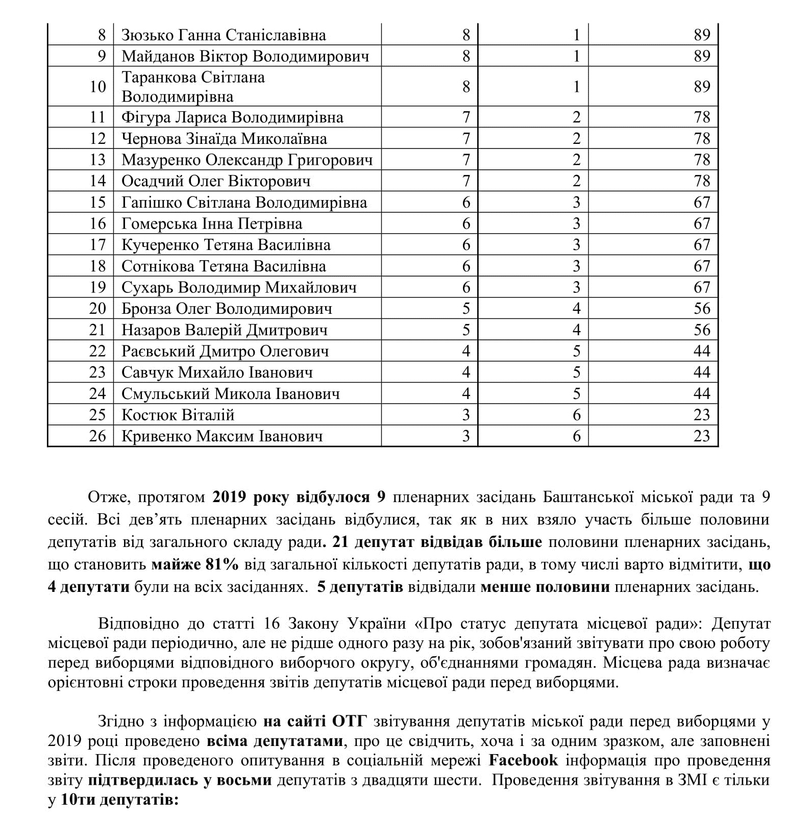 Результати моніторингу діяльності депутатів Баштанської міської ради в 2019 році